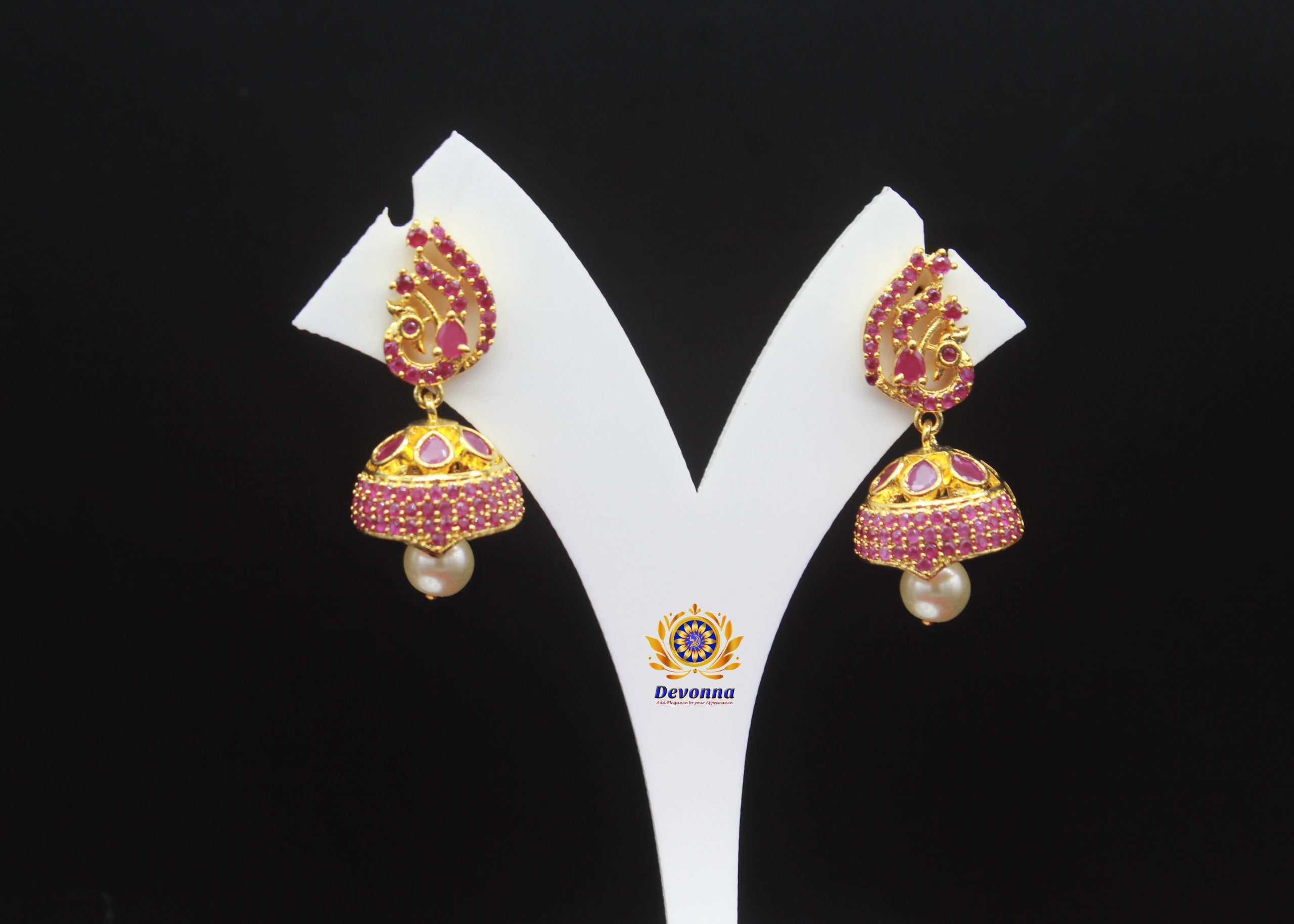 Ruby Colour AD Pearl Earrings