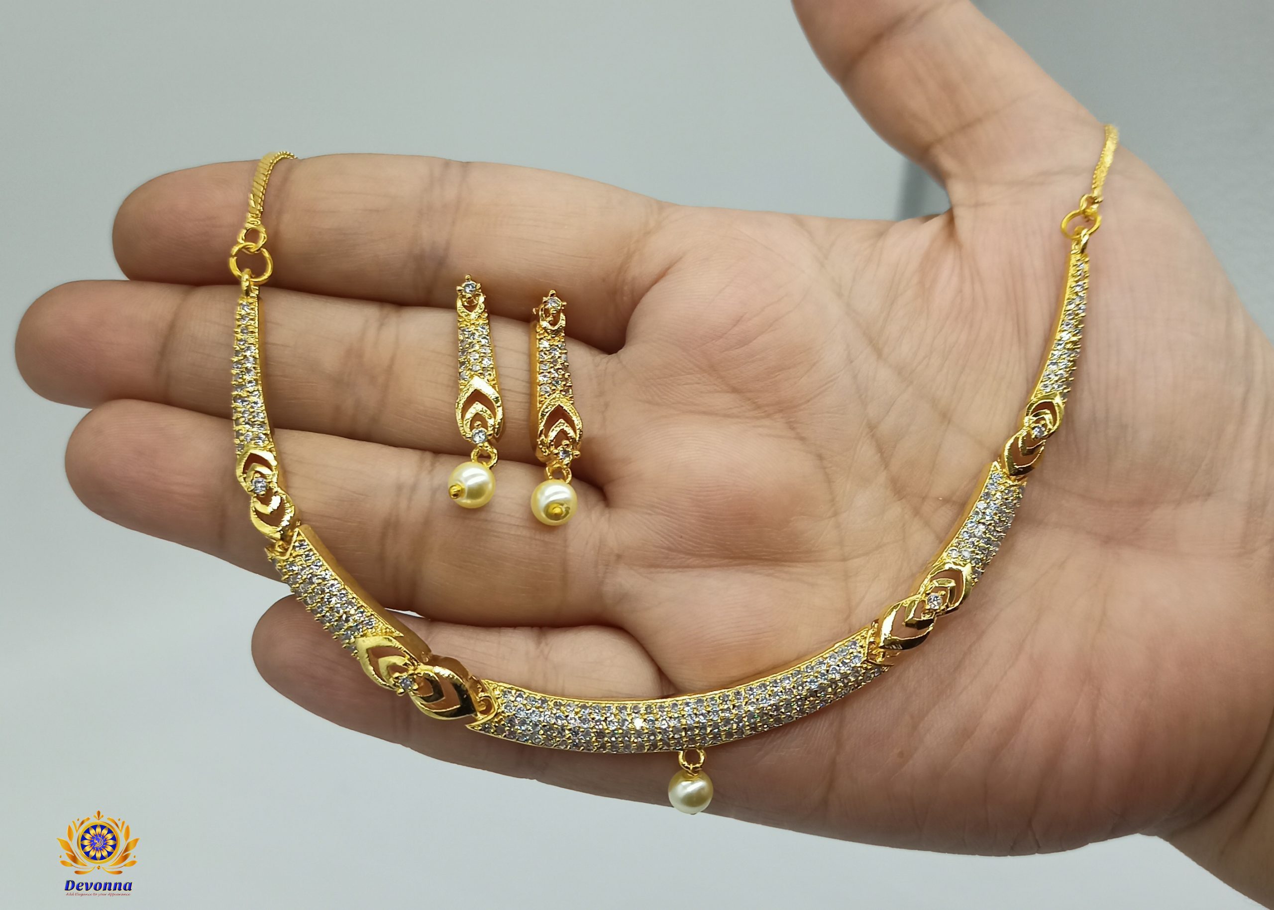 Gold Plated AD studded Necklace Set-ADNC004-129