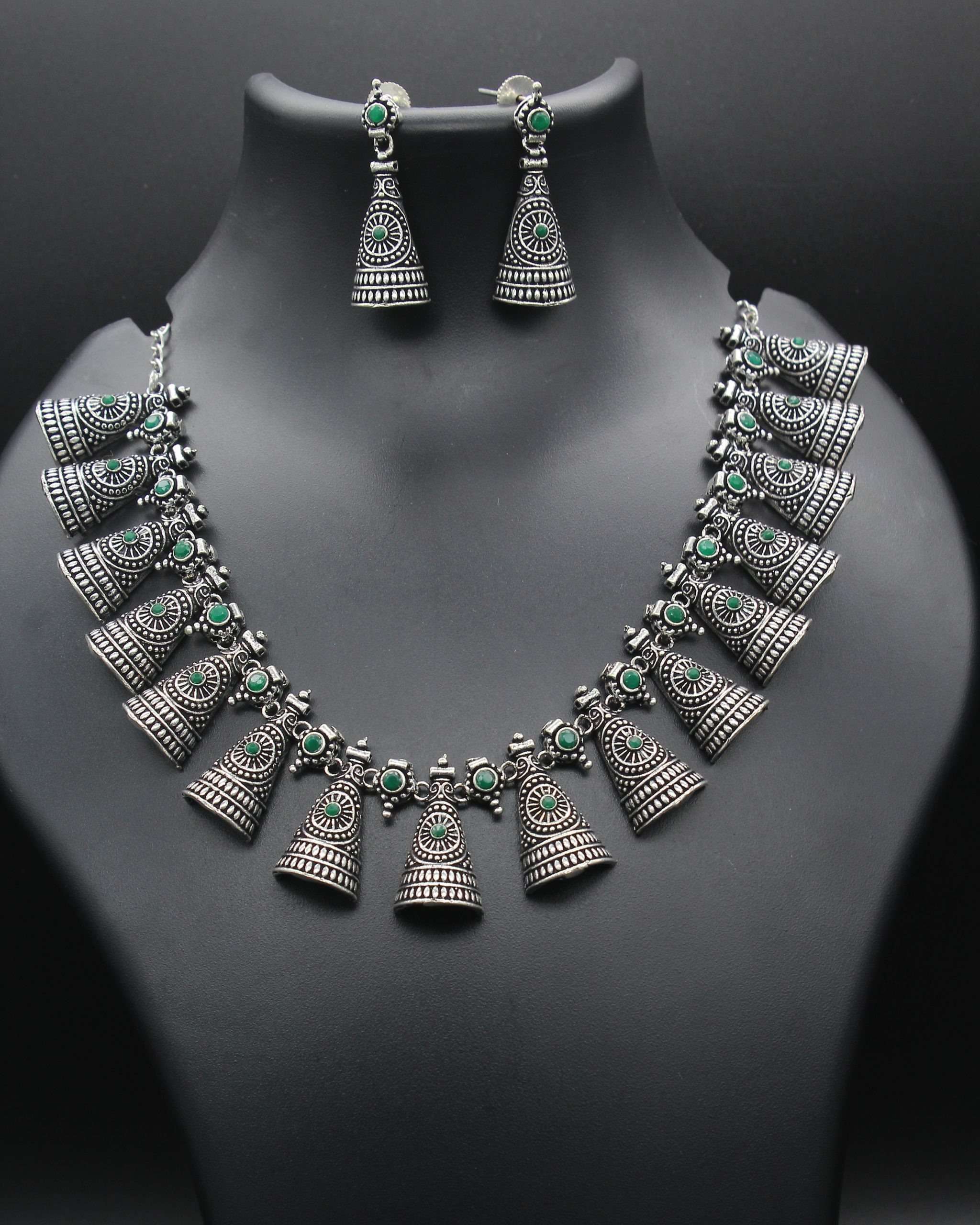 Fancy Oxidised Silver Chain Pendant-NC007-170