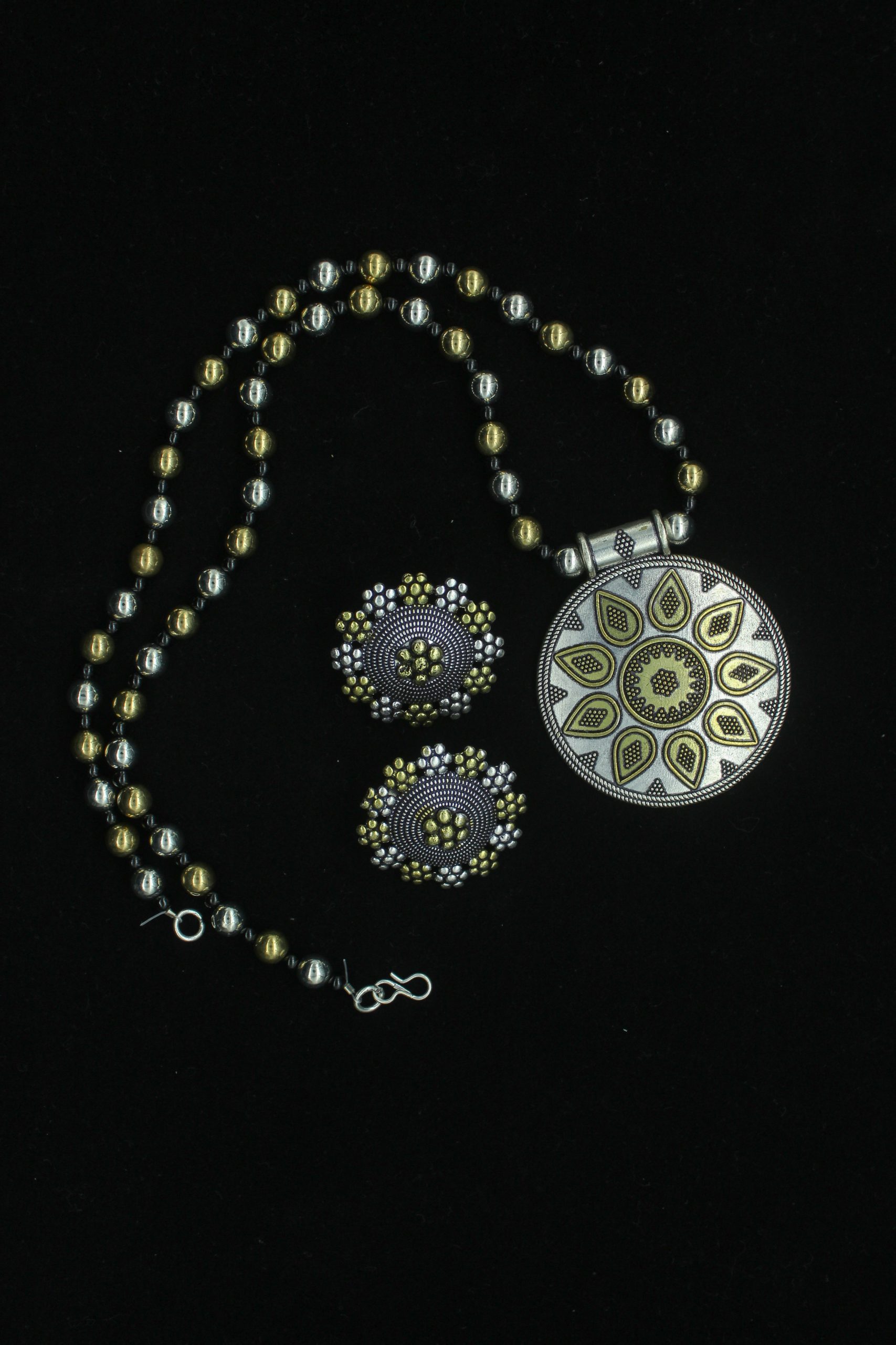 Oxidised Combined Gold Silver Plated Round Necklace Set-NC0033-195