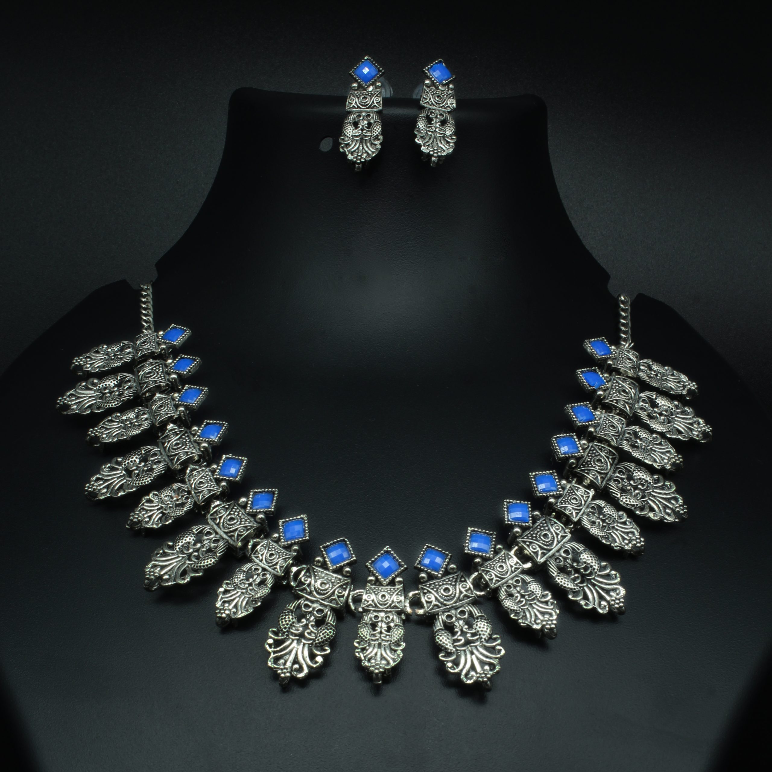 Fancy Oxidised Silver Chain Pendant-NC007-170