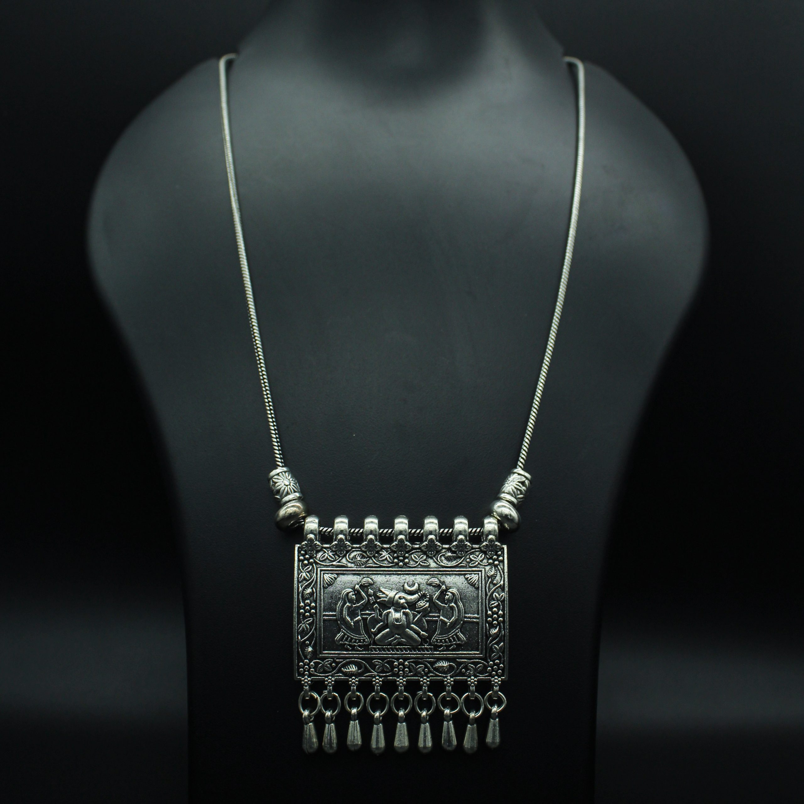 Fancy Oxidised Silver Chain Pendant-NC003-166