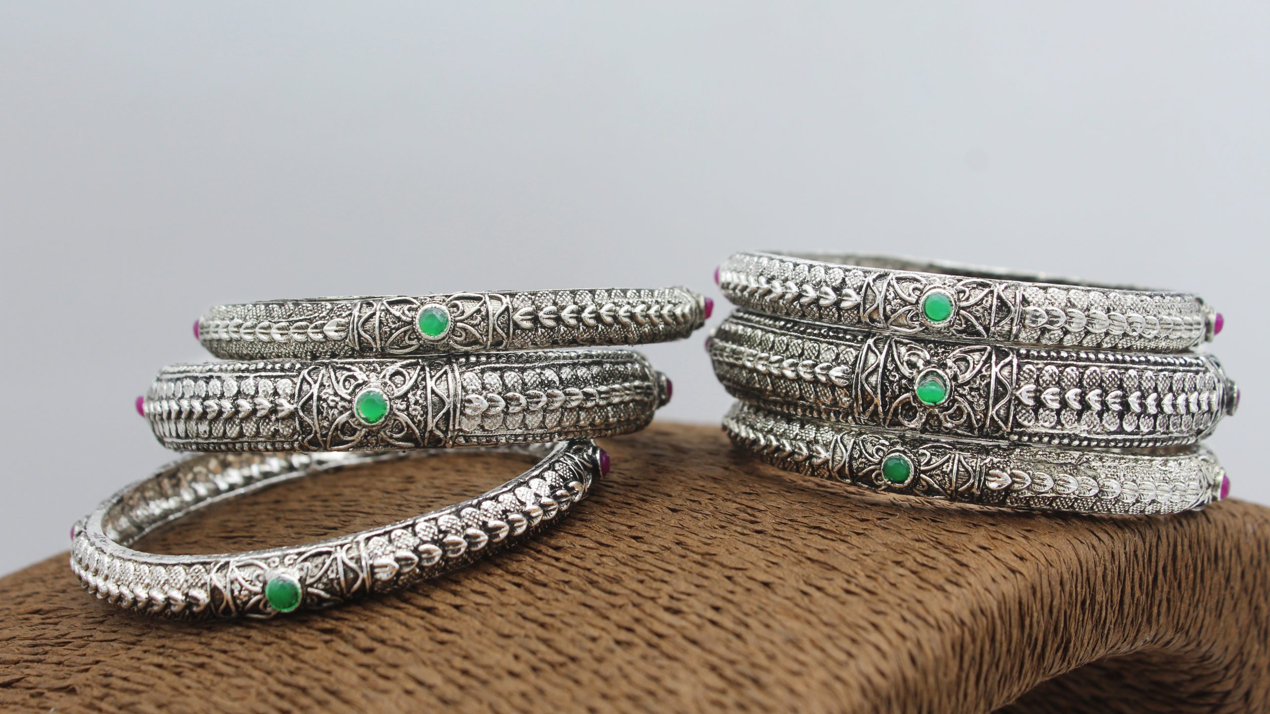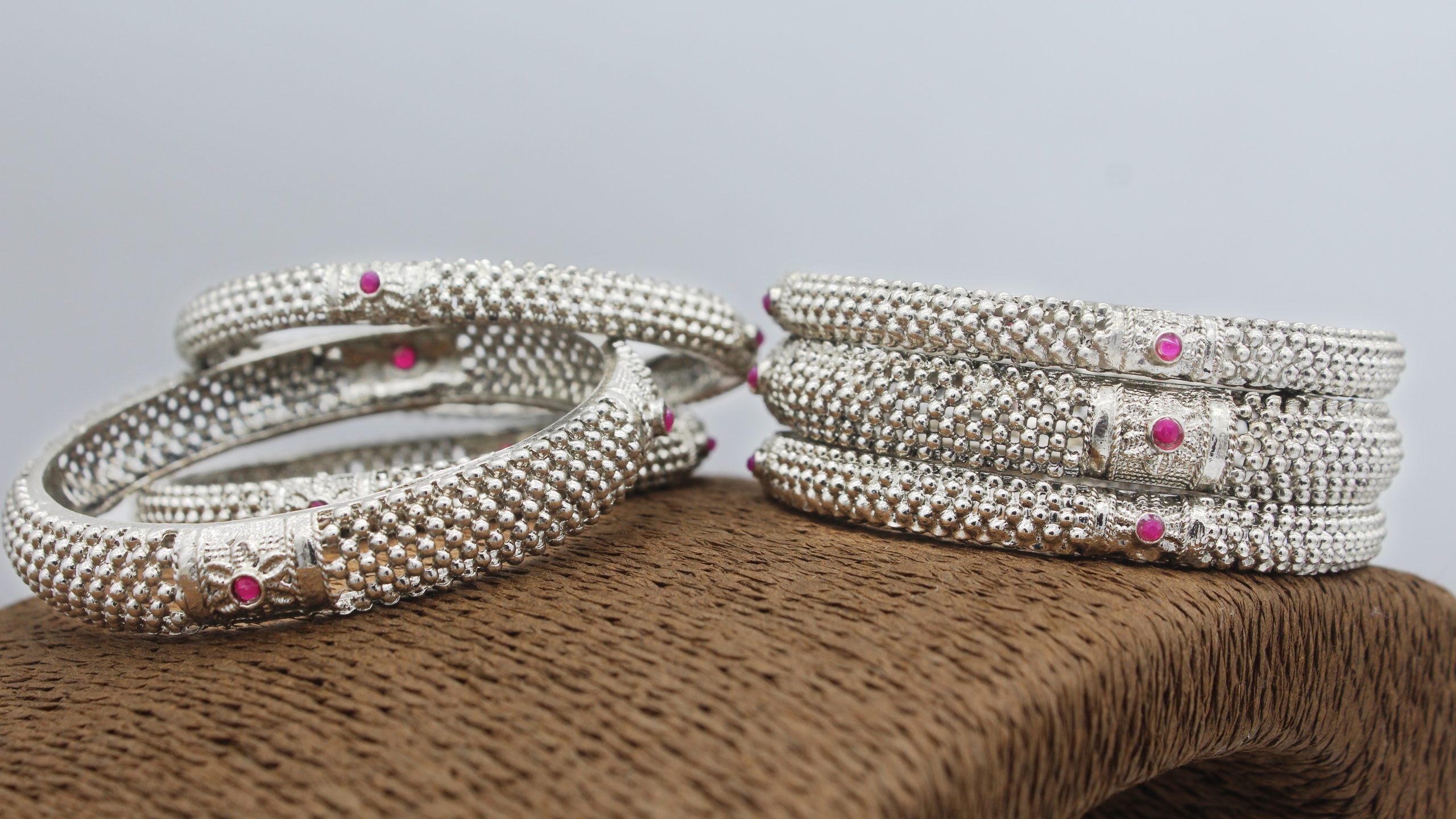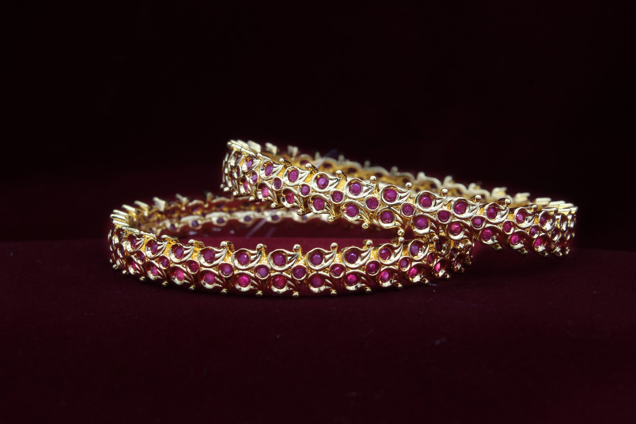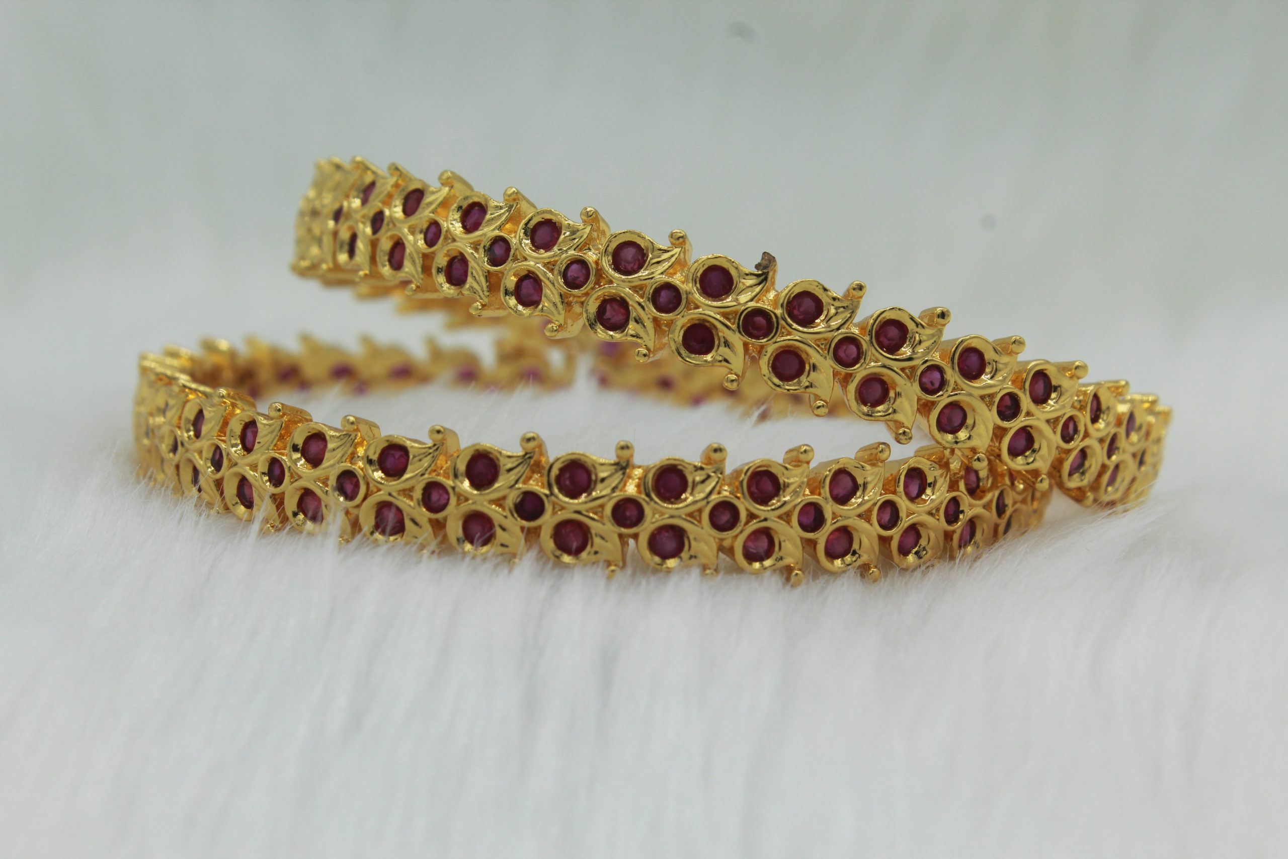 Set of 2 Gold Plated Pink AD Bangles-BD003-242