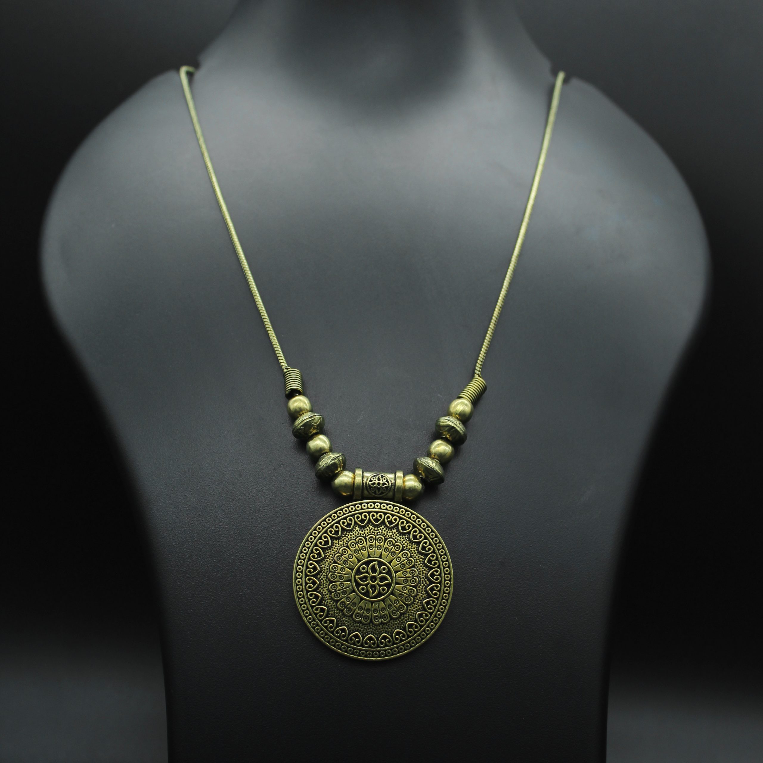 Fancy Oxidised Gold Chain Round Pendant-NC0010-173