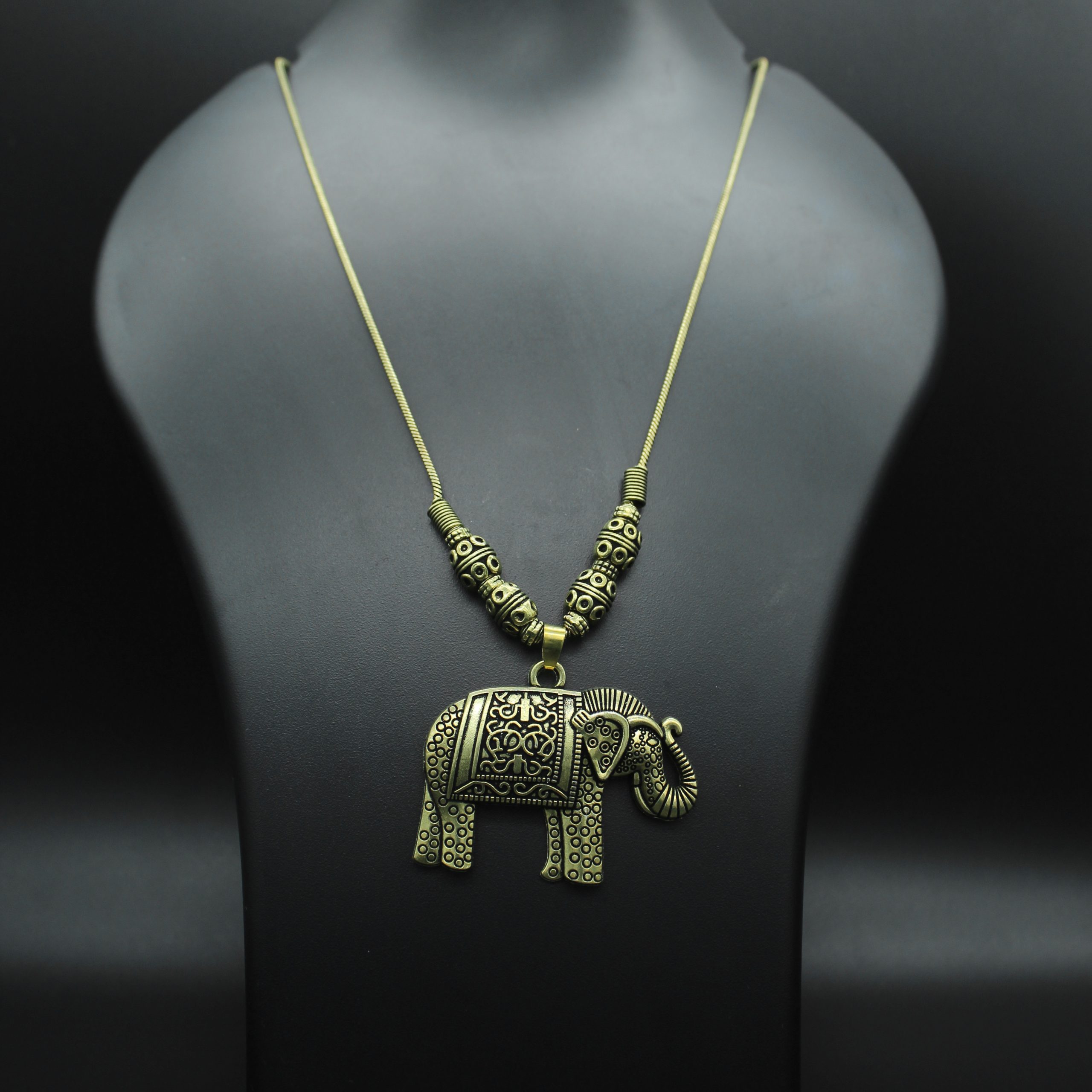 Fancy Elephant Designed Oxidised Gold Chain Pendant-NC0013-176