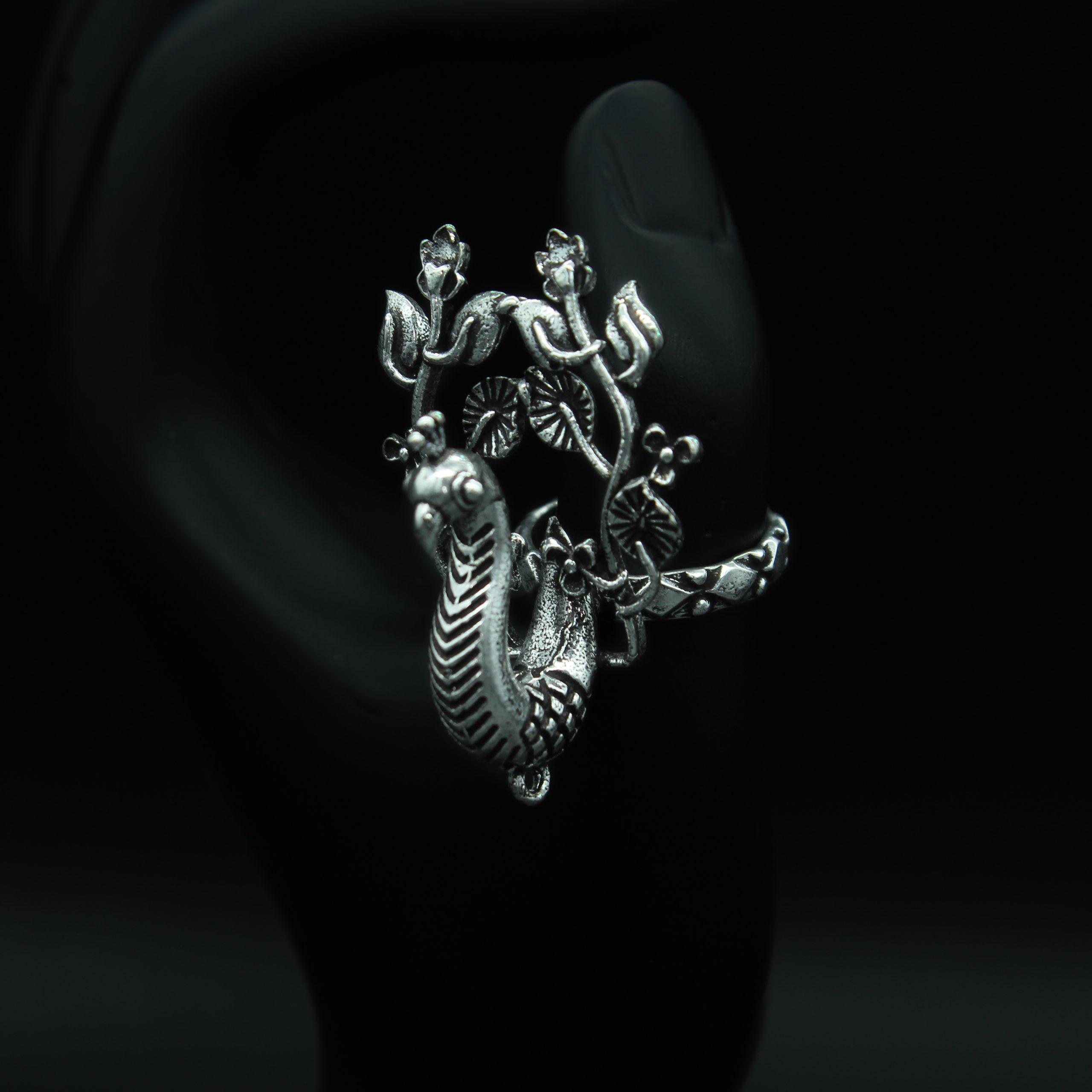 Antique Oxidised Adjustable Peacock Ring-RS004-321