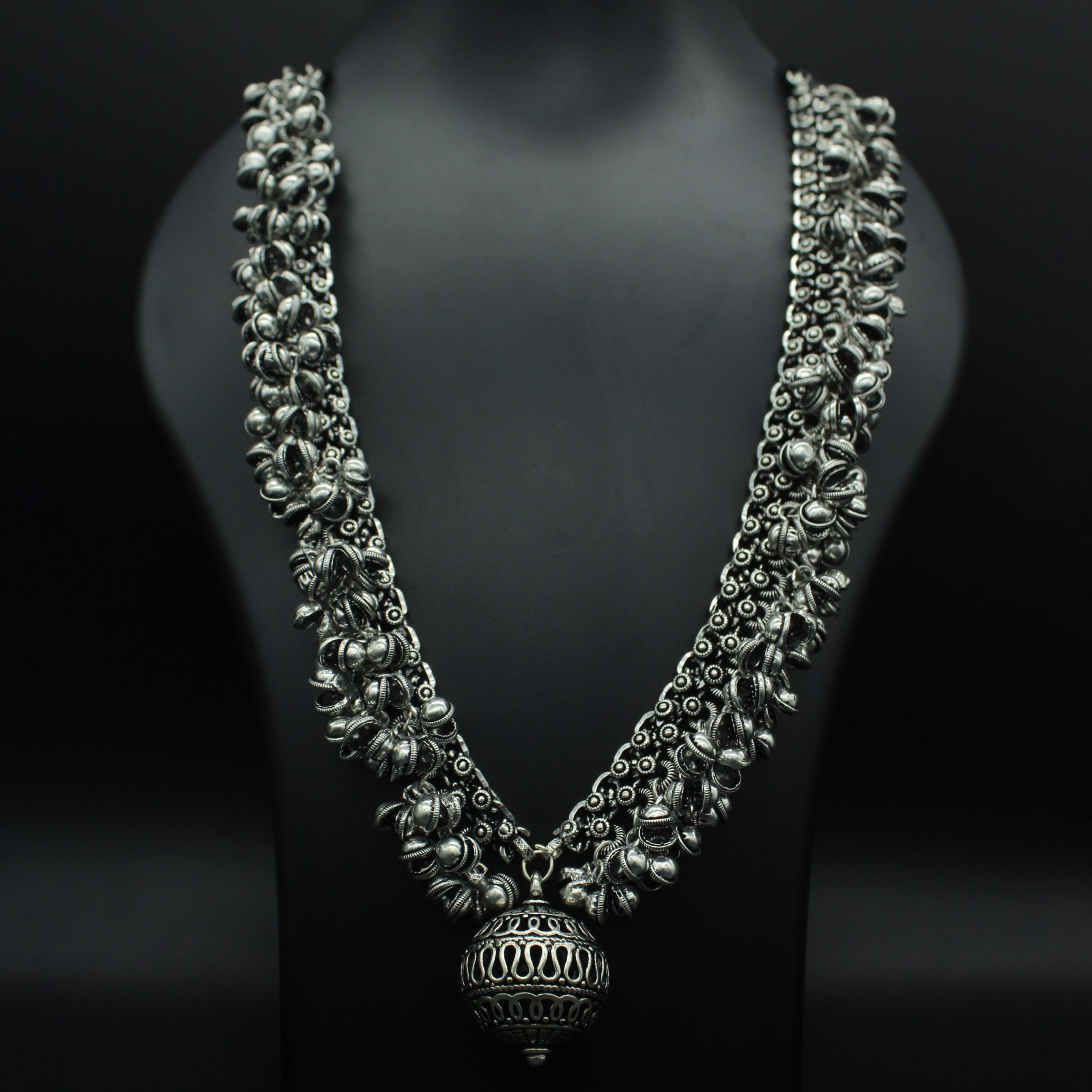 Oxidised Ghungaroo Silver Long Necklace-NC0032-194