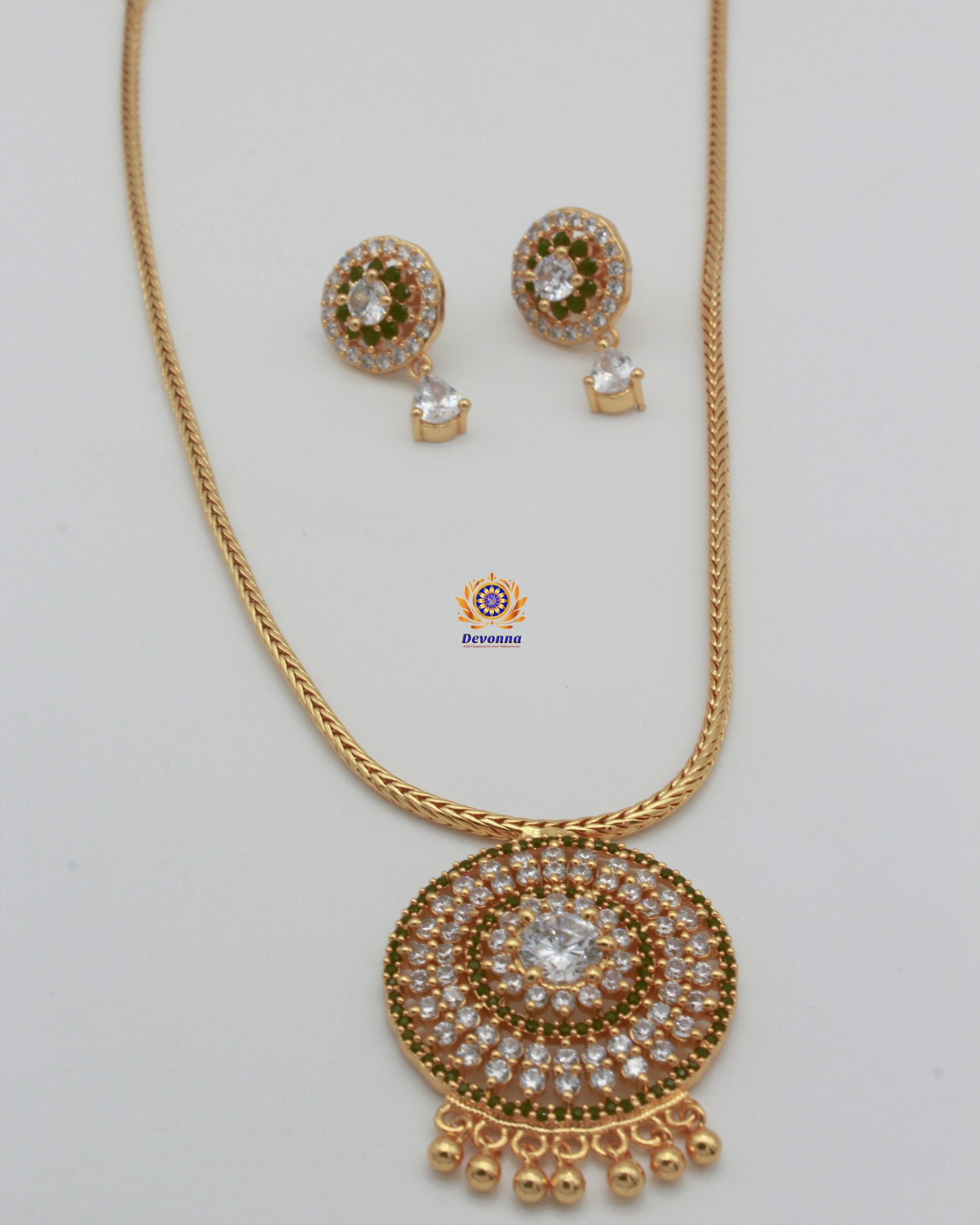 Green & White Colour Micro Gold Polished Premium Necklace Set