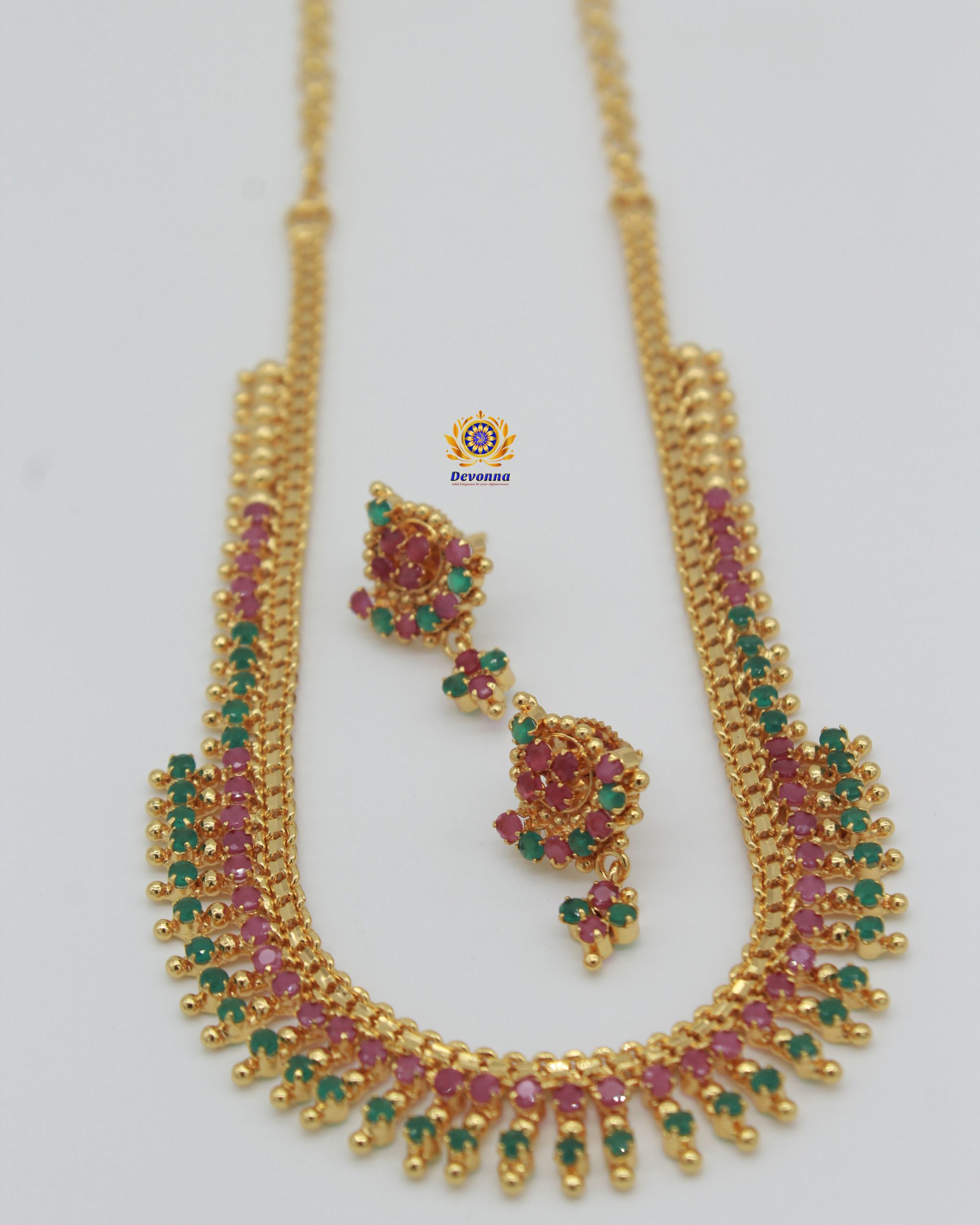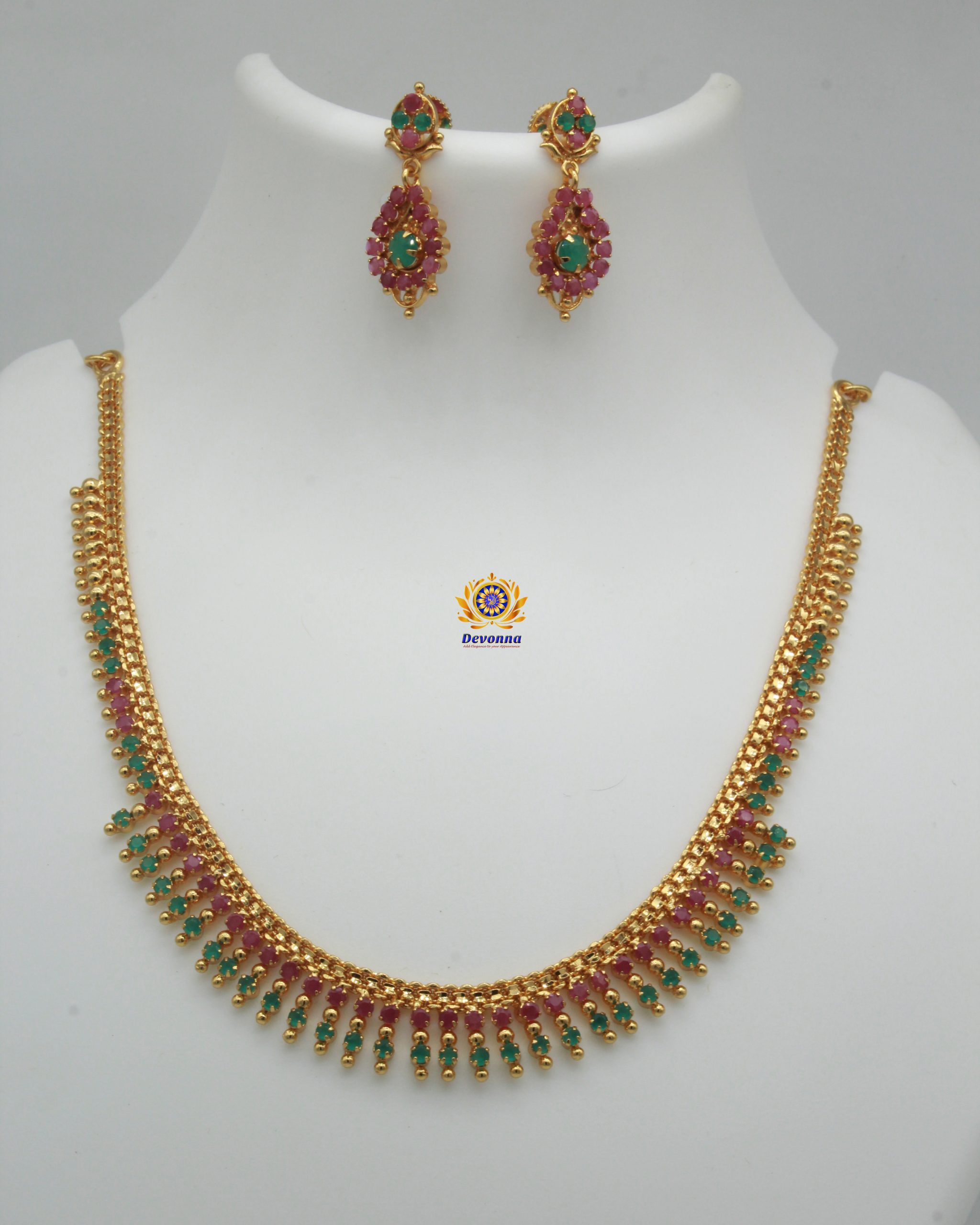Ruby Colour Micro Gold Polished Premium Necklace-NCE0025