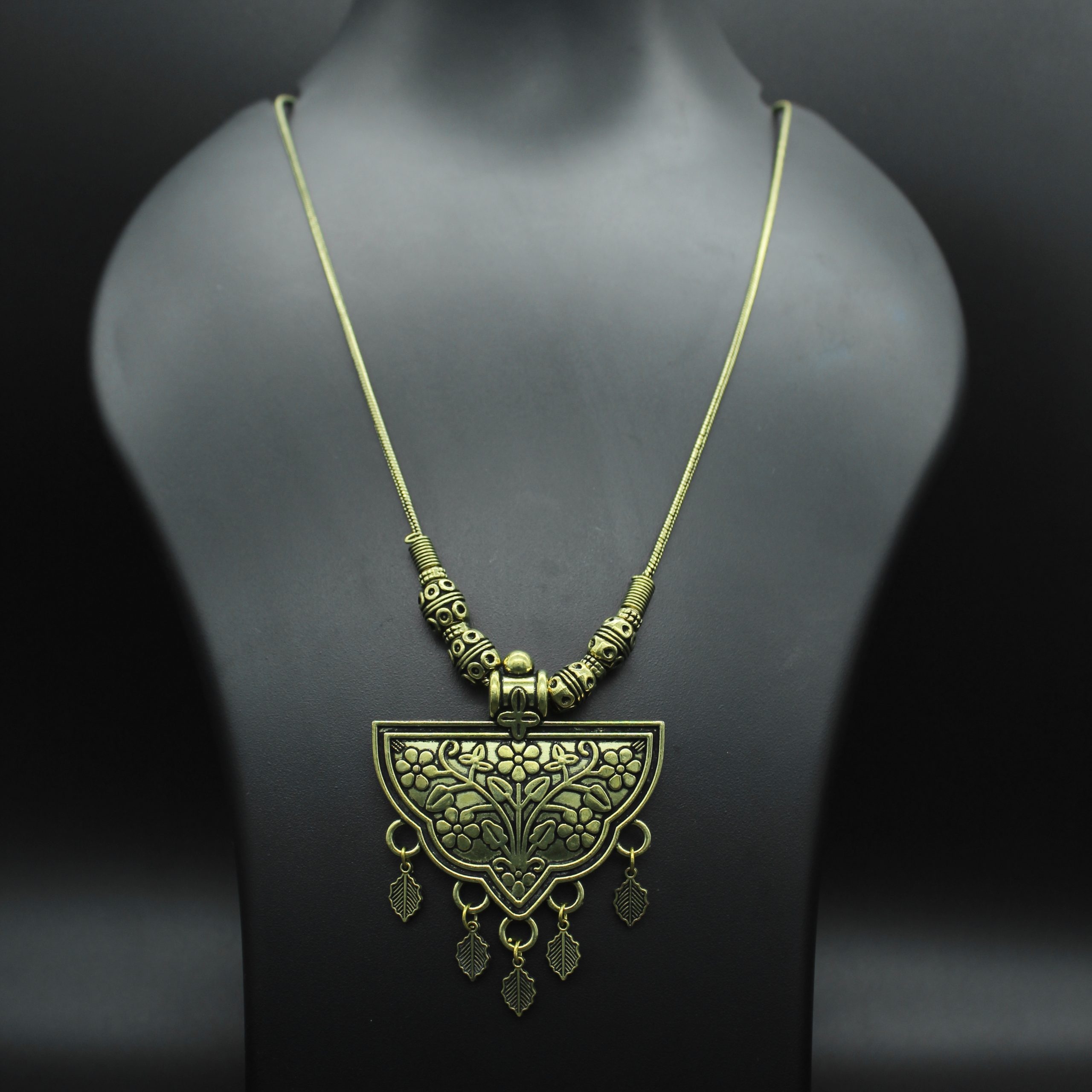 Fancy Floral Designed Oxidised Gold Chain Pendant-NC008-171