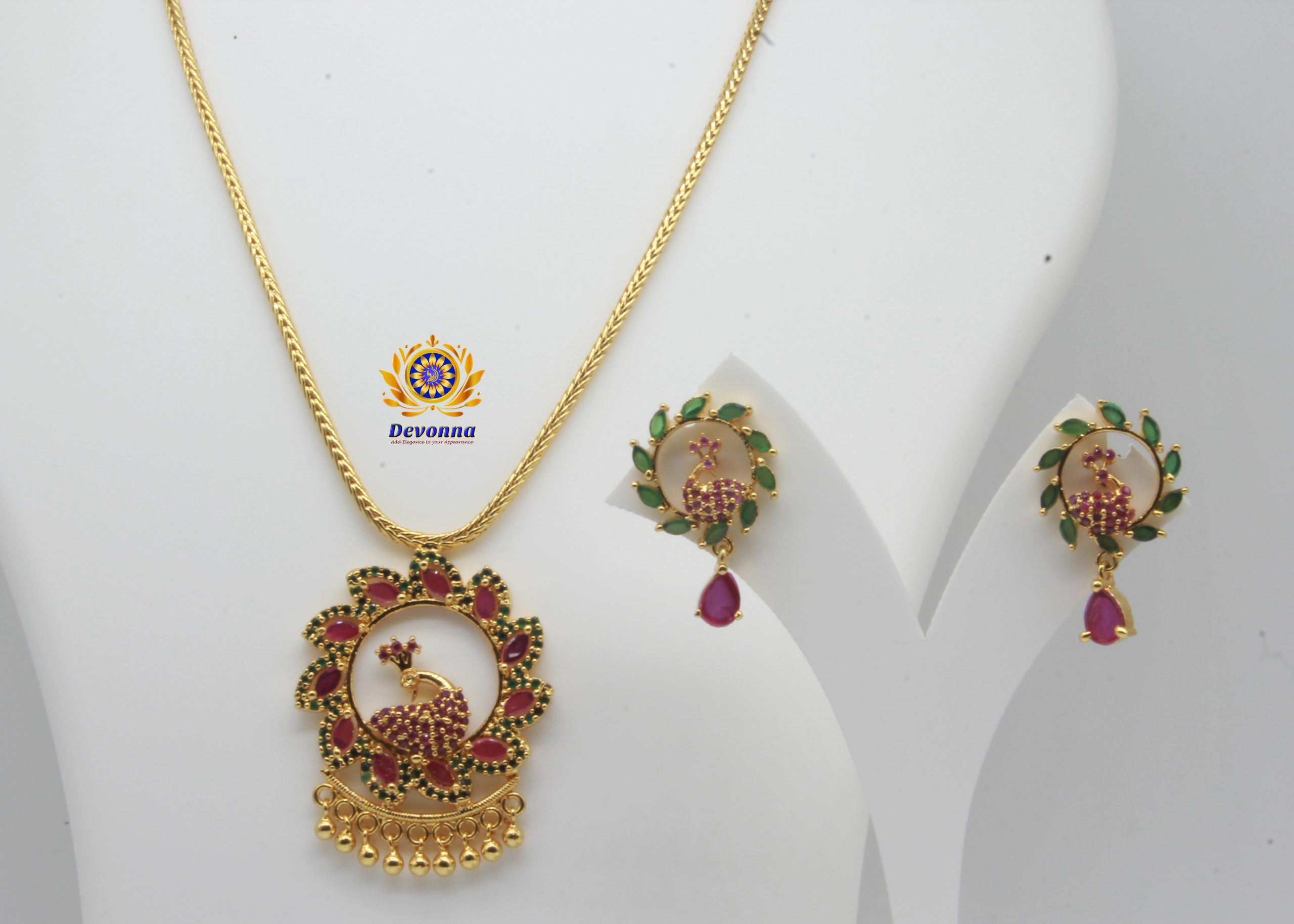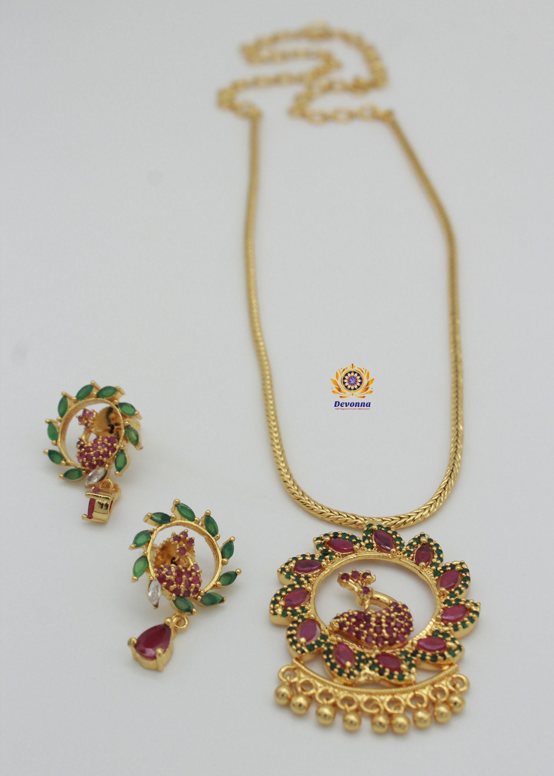 Ruby & Green Colour Micro Gold Polished Premium Necklace Set