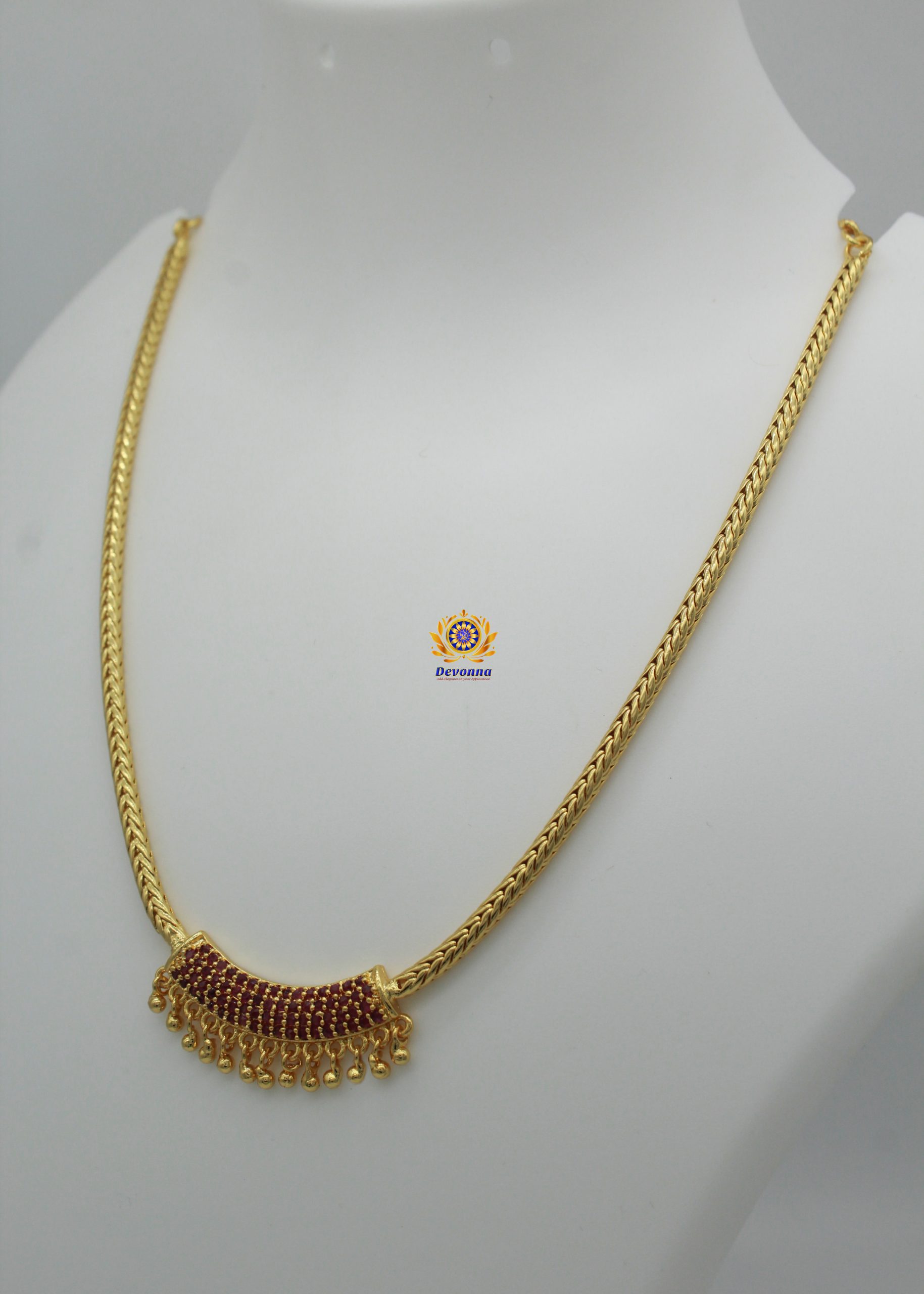 Ruby Colour Micro Gold Polished Premium Necklace-NCE0025