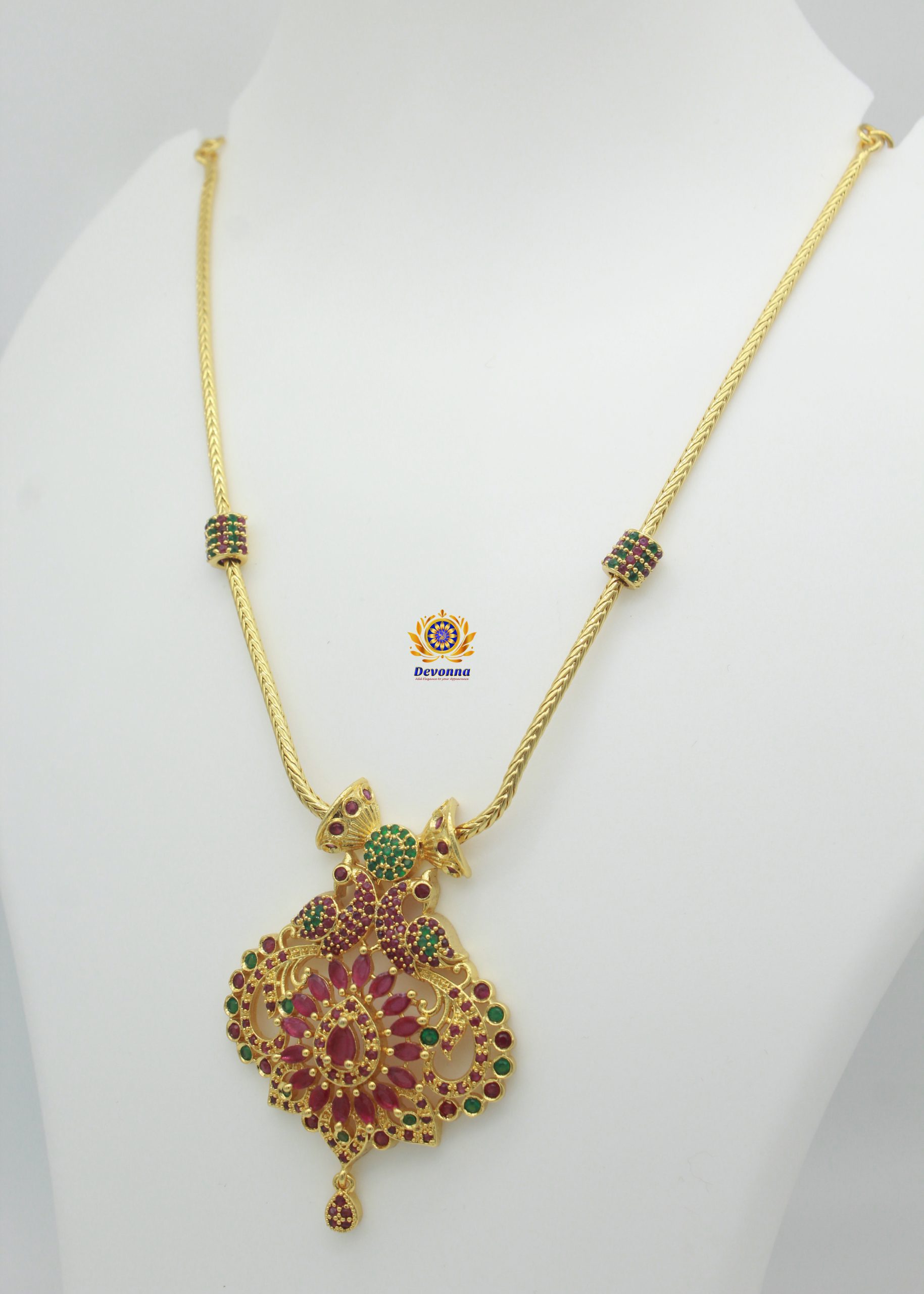 Ruby & Green Colour Micro Gold Polished Premium Necklace