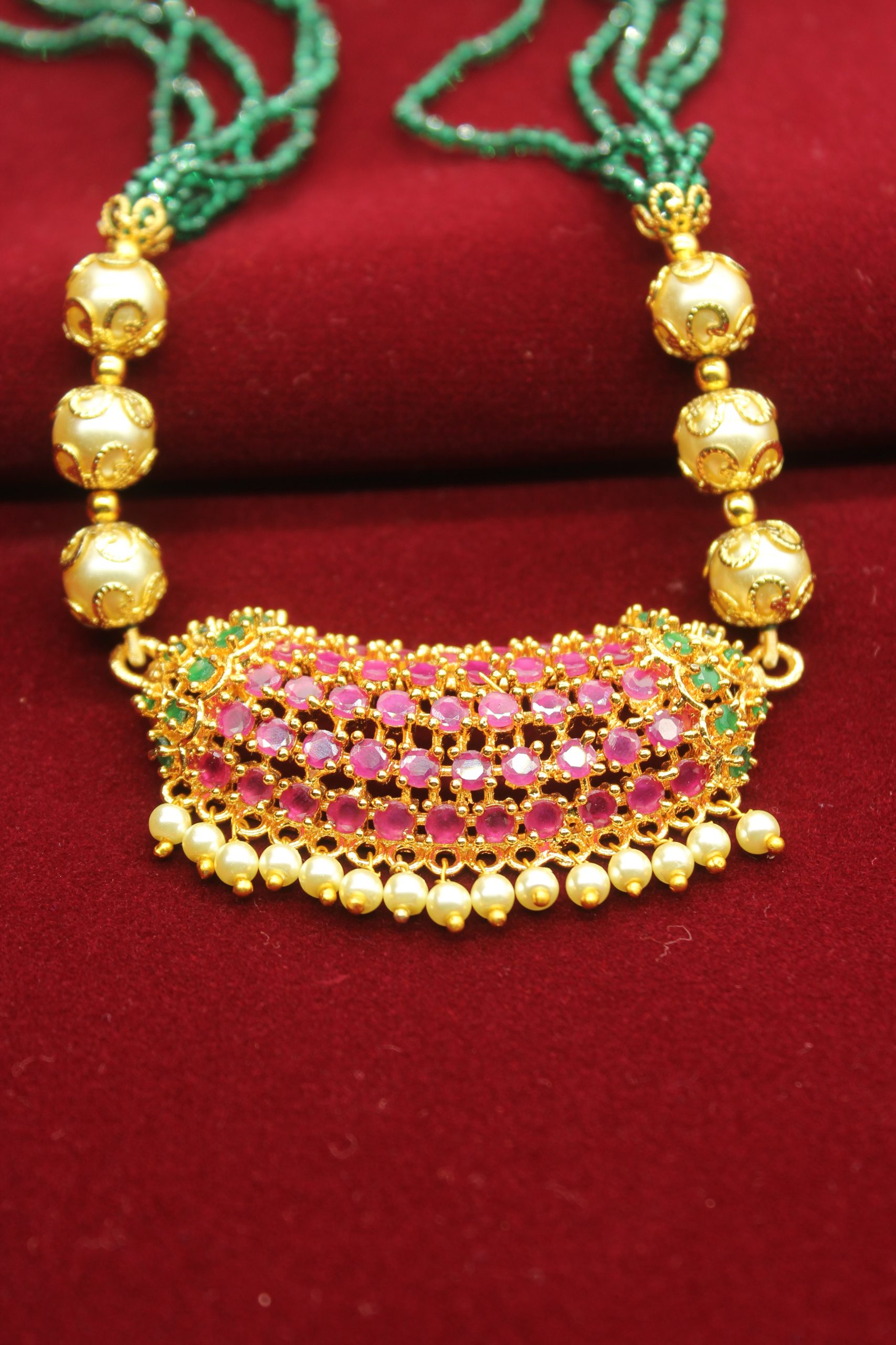 Red gold-Plated Stone Studded & Beaded Classy Necklace Set-NCE004-145