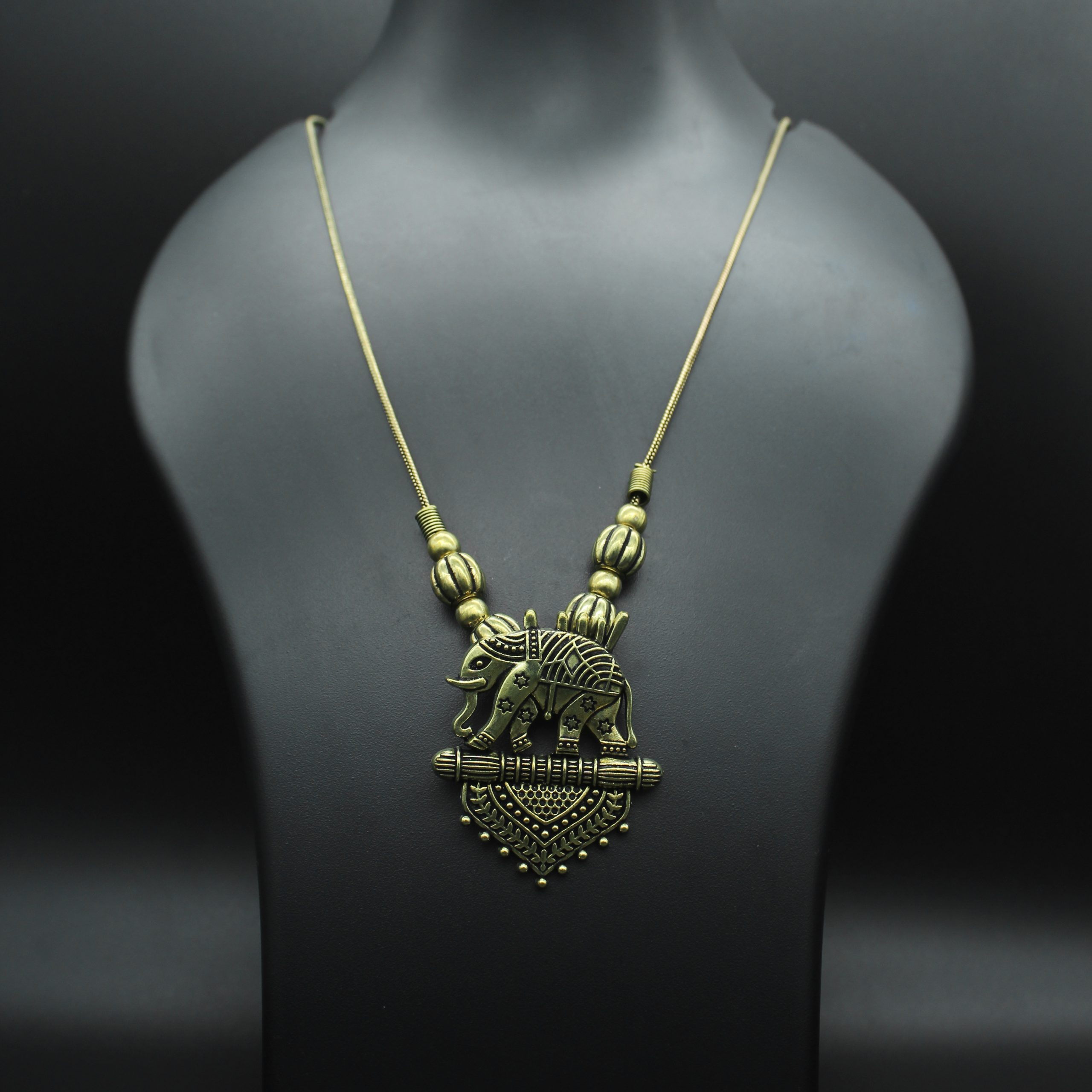 Fancy Elephant Designed Oxidised Gold Chain Pendant-NC0012-175