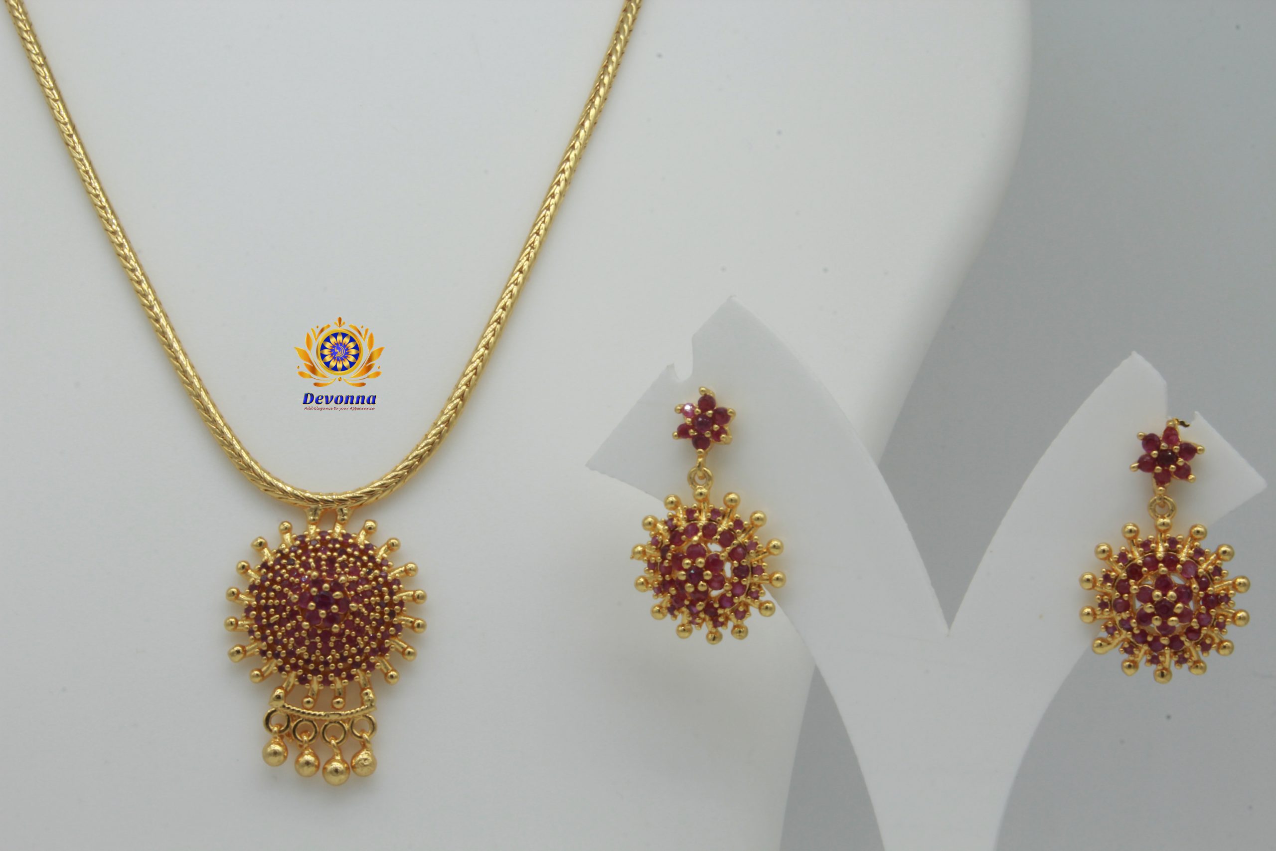 Ruby Colour Micro Gold Polished Premium Necklace